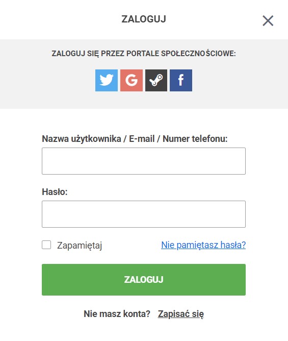 - Wpisz dane logowania określone podczas rejestracji. Można także skorzystać z kont na portalach społecznościowych, o ile zostało ono połączone.